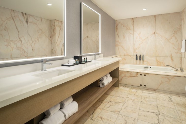 Embarking on the guestroom and suite enhancement phase two months into the public space renovation, Regal Renovations implemented upgrades in all 432 rooms. This included the installation of energy-efficient fan coil units, luxury vinyl tile complemented by plush carpet inlays, fresh paint, and chic wallcoverings. The rooms received a makeover with new furniture, fixtures, and lighting, while 75% of the bathrooms underwent tub-to-shower conversions, featuring new floor and wall tiles, accessories, and elegant stone-top vanities. Aesthetic and functional enhancements extended to the introduction of wood and glass bath doors and thresholds, with the 19th floor suites receiving custom millwork cabinets and sliding glass exterior doors. Executed between October 2022 and July 2023, the entire project is poised for LEED Silver certification. Regal Renovations has not only redefined the Westin Downtown Denver but has also set a new standard for luxurious accommodations and sustainable design.